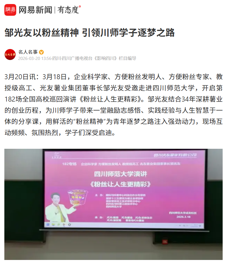 转载网易新闻 邹光友以粉丝精神 引领川师学子逐梦之路
