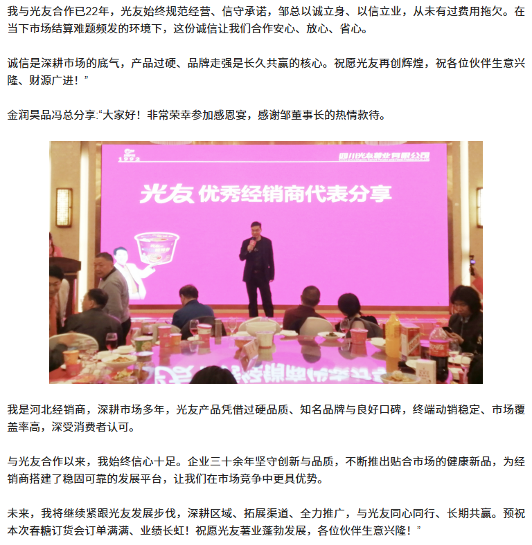 转载四川商界网 光友低Gi健康酸辣粉招商感恩宴圆满举行