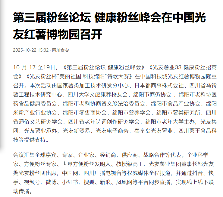转载四川食安今日头条-第三届粉丝论坛 健康粉丝峰会在中国光友红薯博物园召开