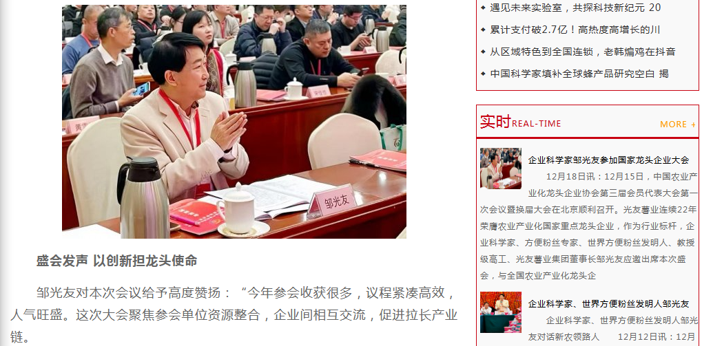 转载中国食品经济网-企业科学家邹光友出席国家龙头企业大会