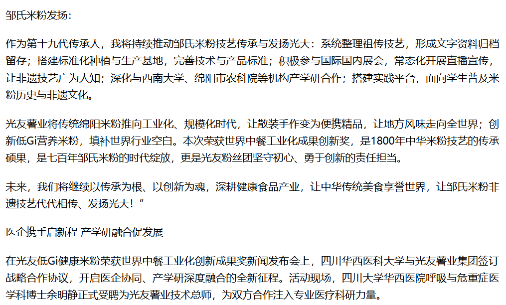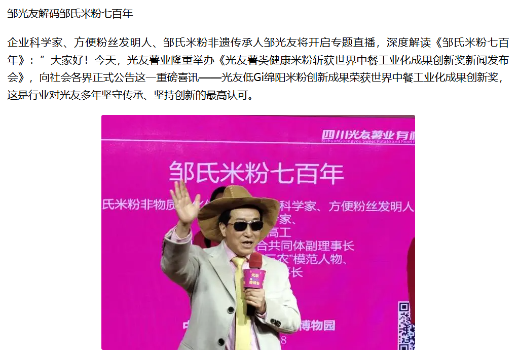 转载凤凰网:光友低Gi健康米粉获世界中餐工业化创新成果奖新闻发布会圆满召开