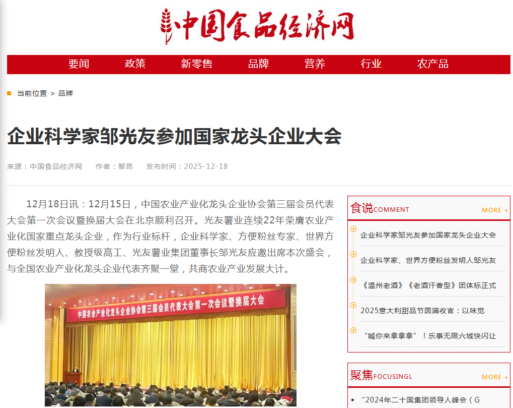 转载中国食品经济网-企业科学家邹光友出席国家龙头企业大会