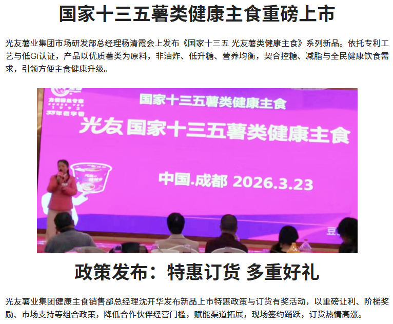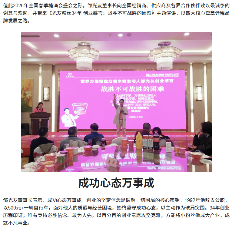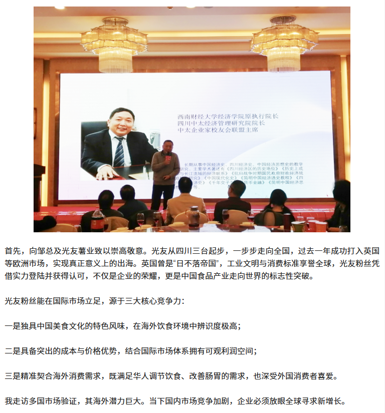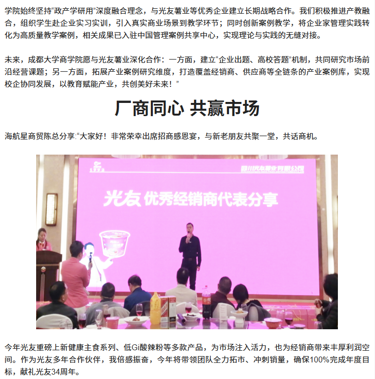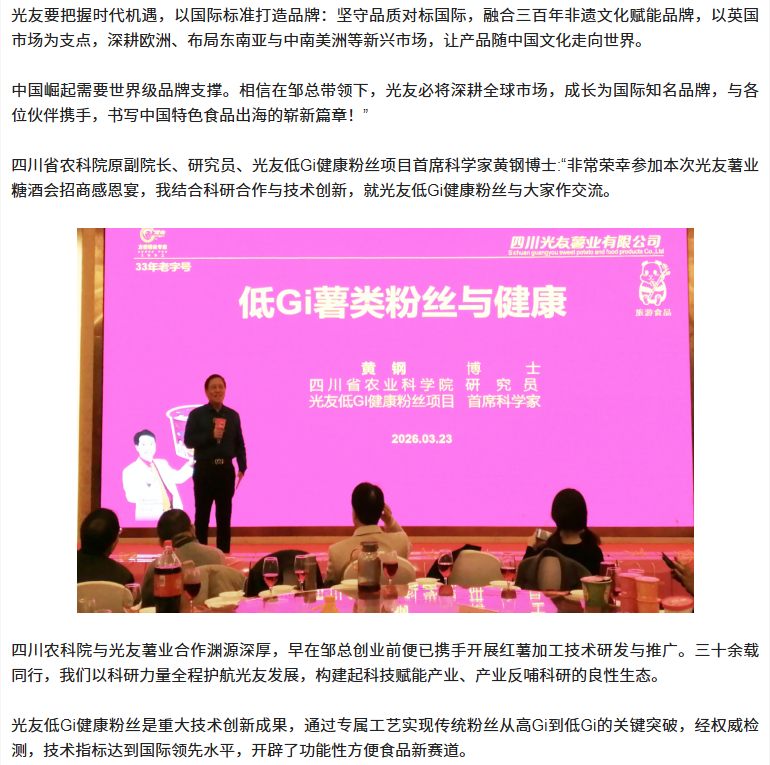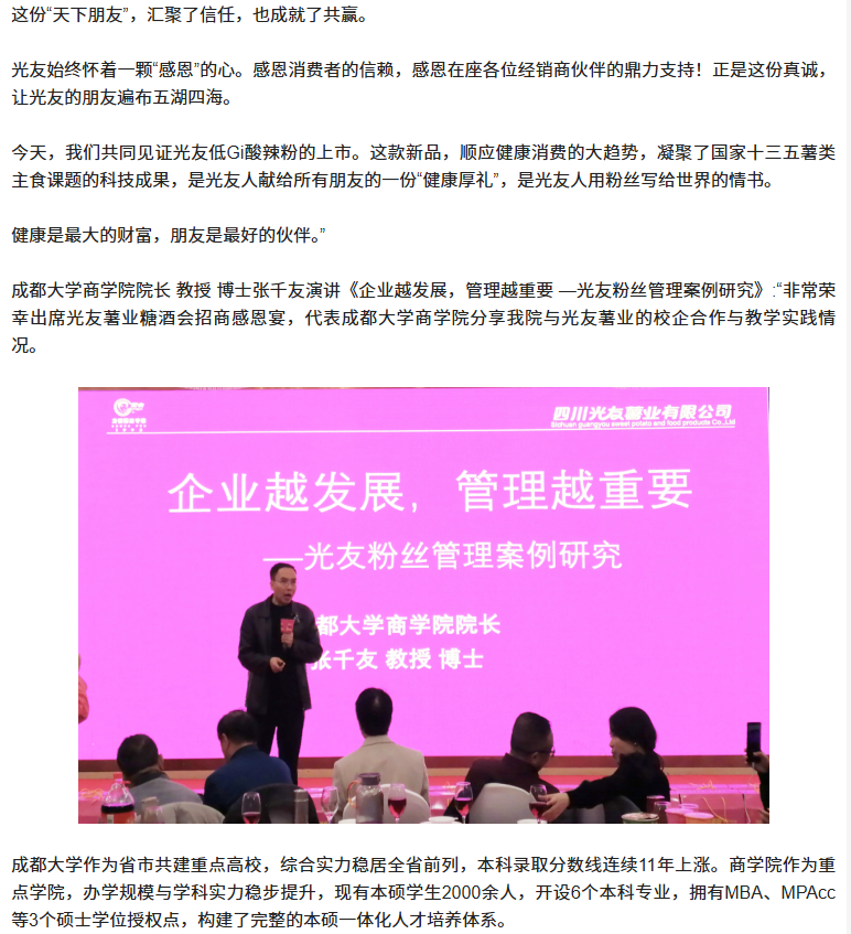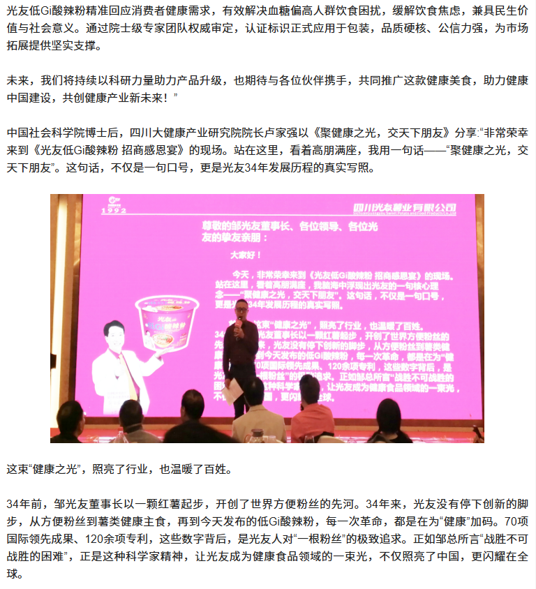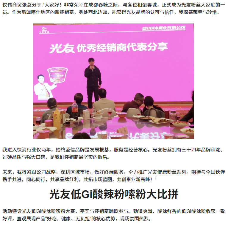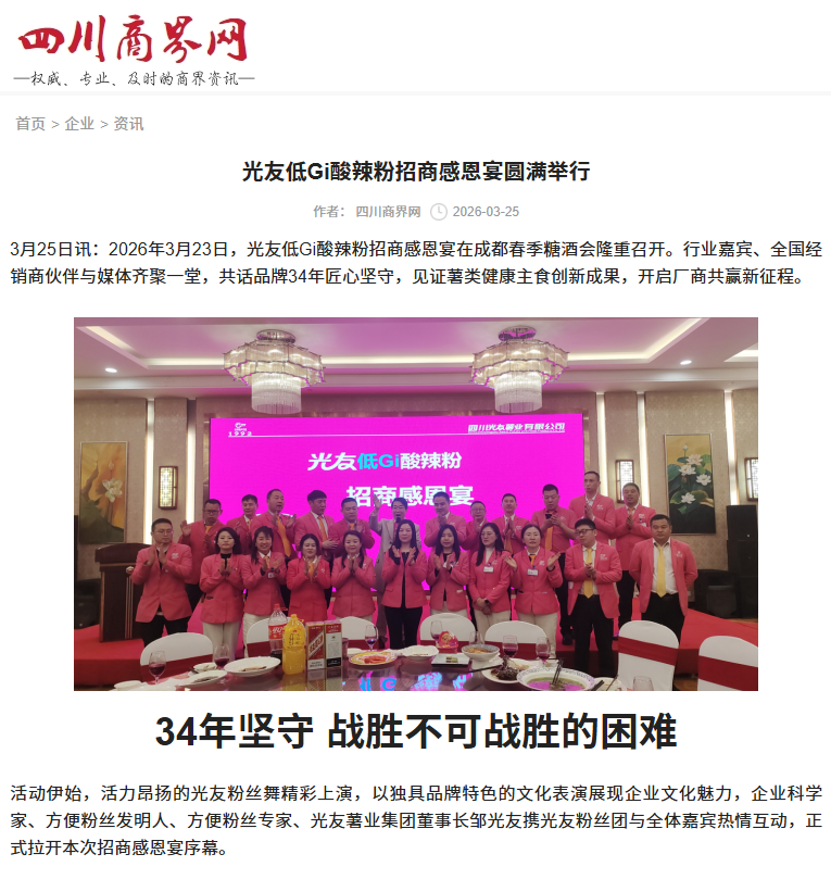 转载四川商界网 光友低Gi健康酸辣粉招商感恩宴圆满举行