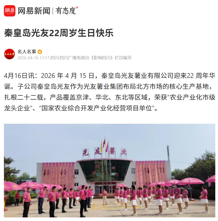 转载网易新闻 秦皇岛光友22周岁生日快乐