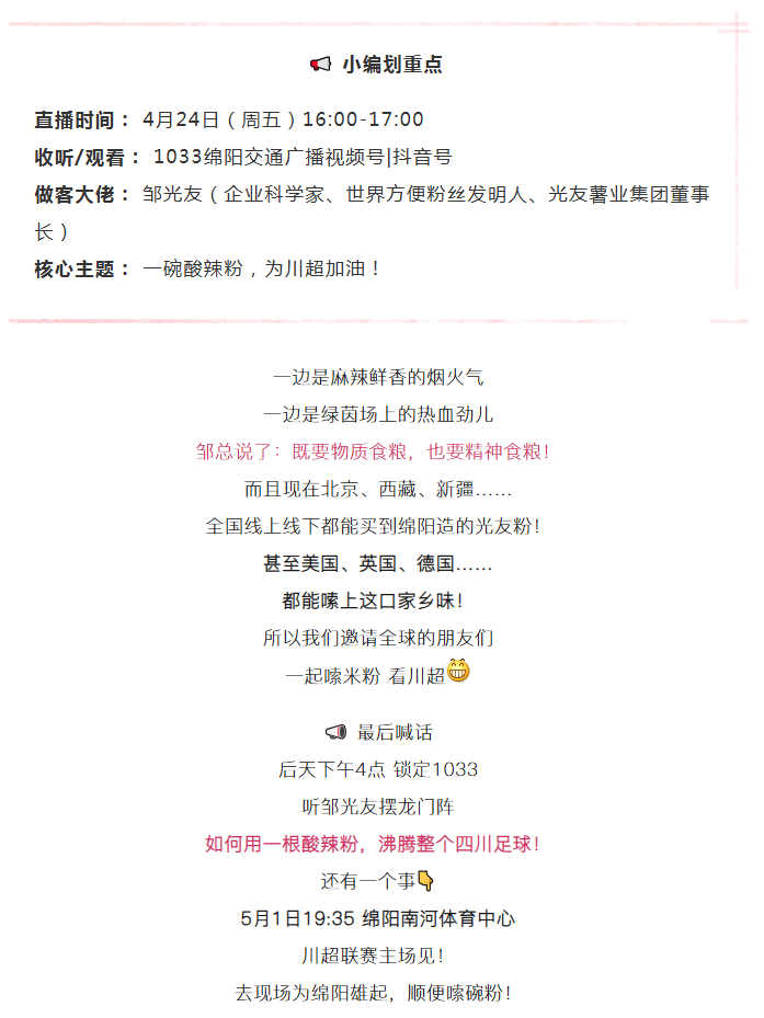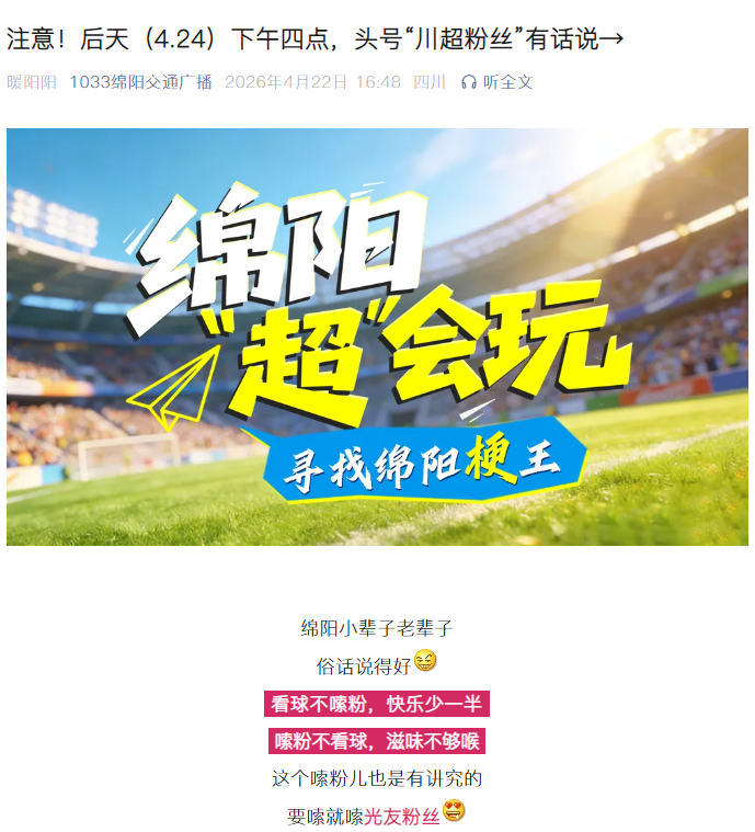 转载103.3 注意!后天(4.24)下午四点,头号“川超粉丝”有话说