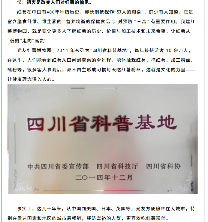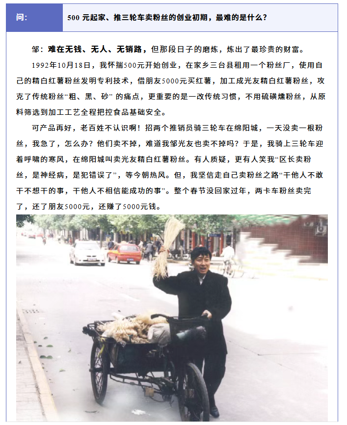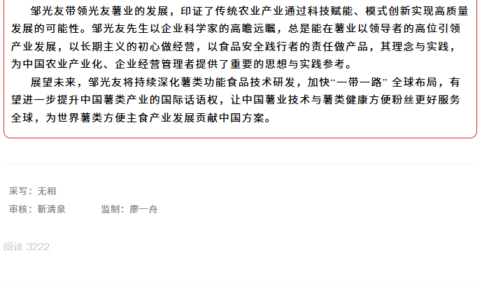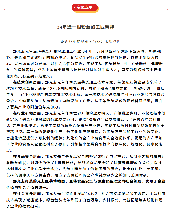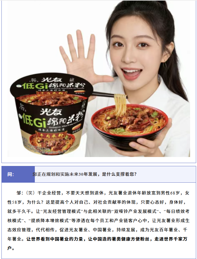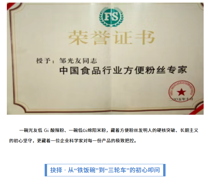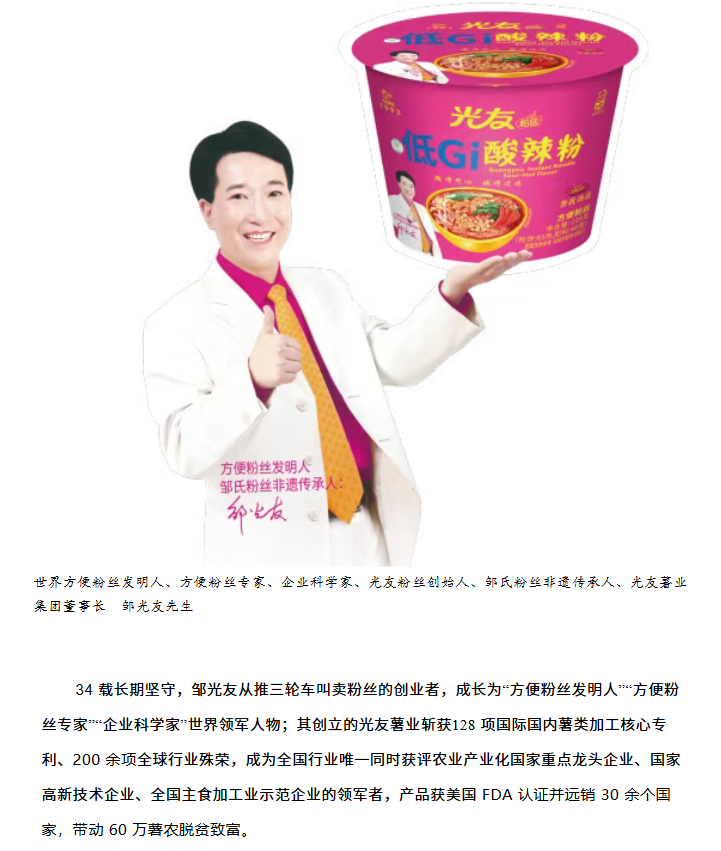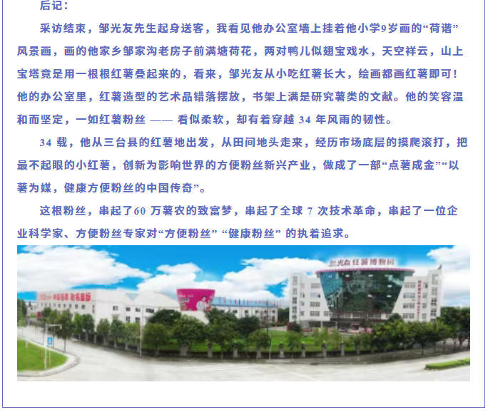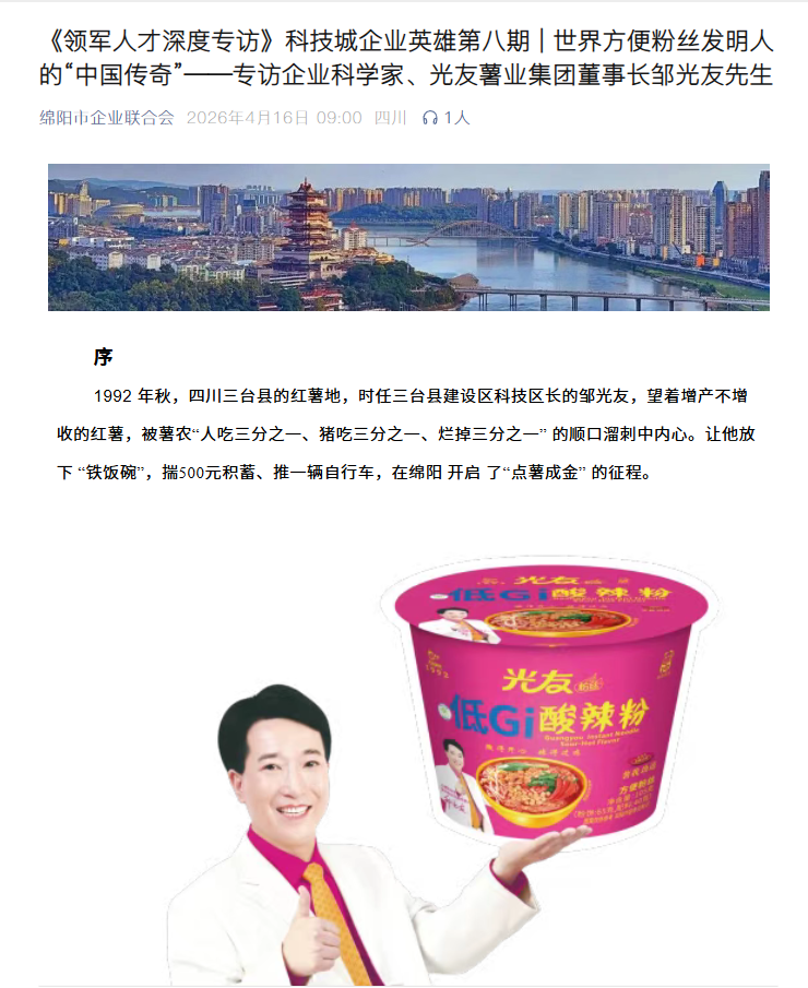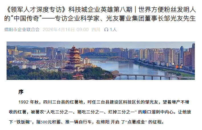 转载绵阳市企业联合会 《领军人才深度专访》科技城企业英雄第八期 | 世界方便粉丝发明人的“中国传奇”——专访企业科学家、光友薯业集团董事长邹光友先生
