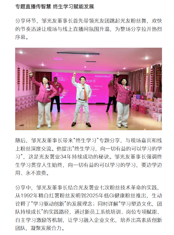 光友红薯博物园暖冬盛会启幕 邹光友直播分享终生学习