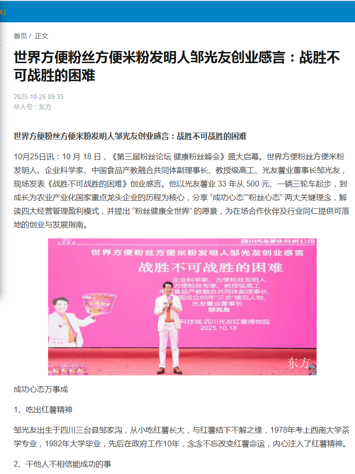 转载华人头条-世界方便粉丝方便米粉发明人邹光友创业感言:战胜不可战胜的困难