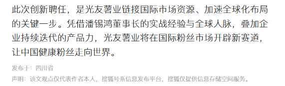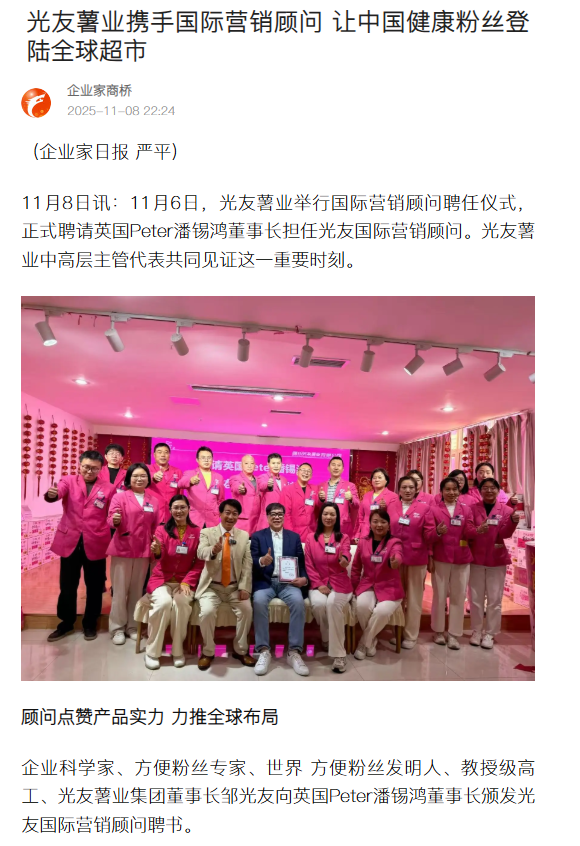转载搜狐网-光友薯业携手国际营销顾问 让中国健康粉丝登陆全球超市