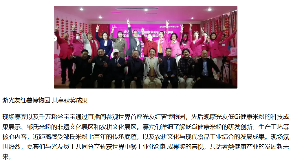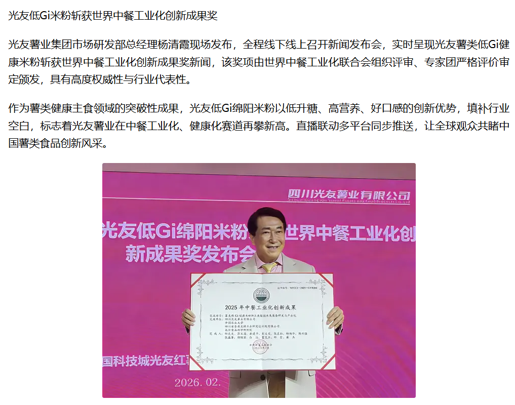 转载凤凰网:光友低Gi健康米粉获世界中餐工业化创新成果奖新闻发布会圆满召开