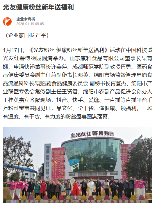 转载搜狐网:光友健康粉丝 元旦送福利