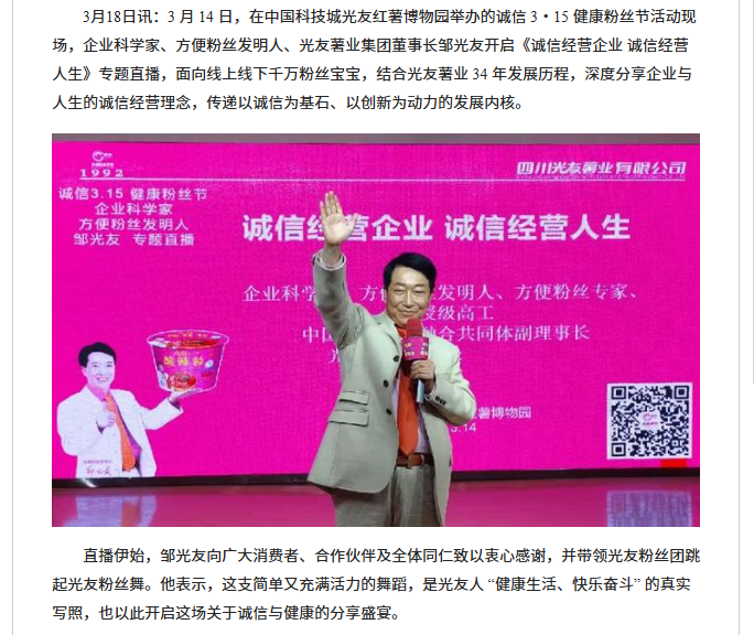 转载网易新闻 诚信3·15健康粉丝节在光友红薯博物园举办